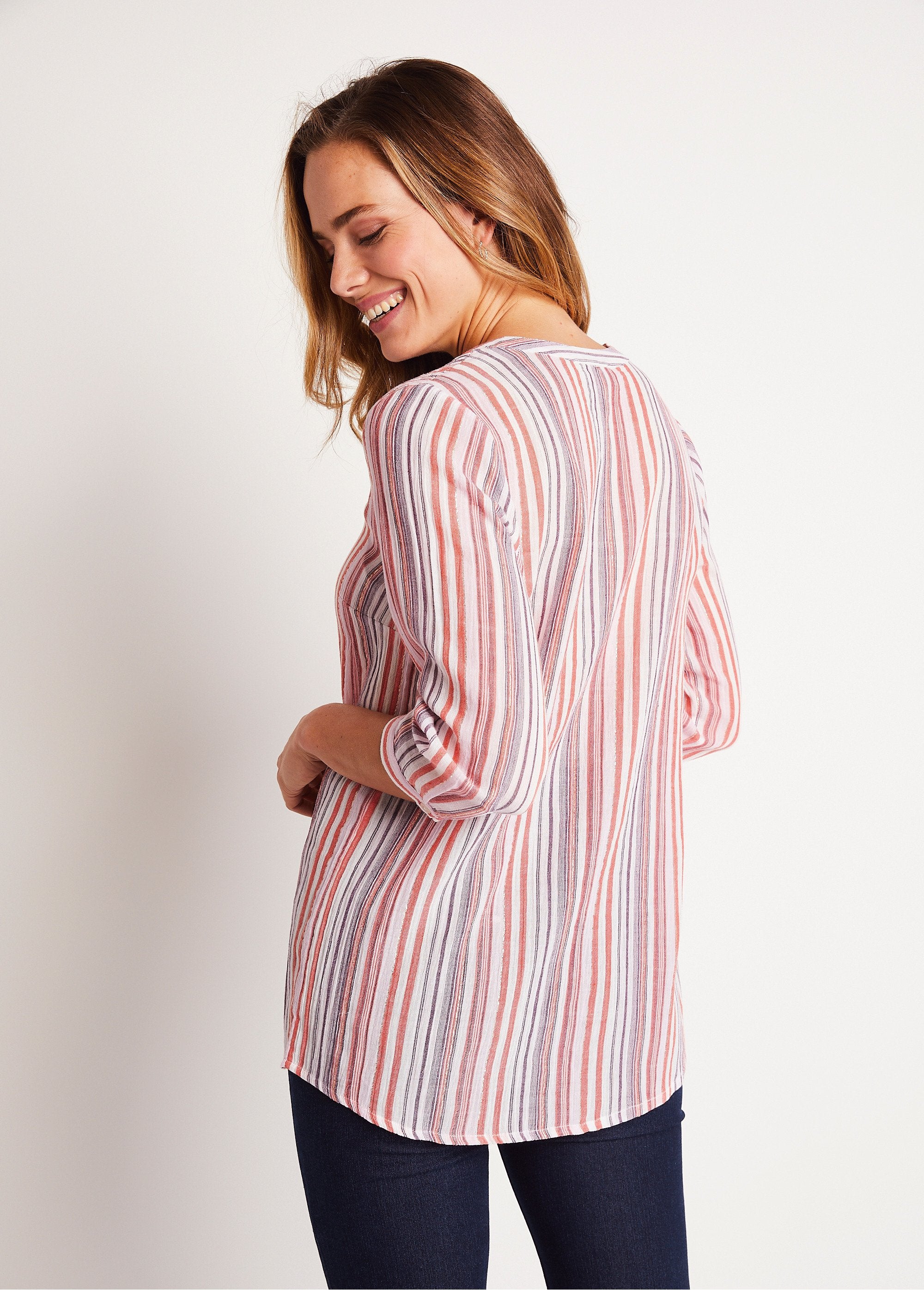 Long V-neck tunic with 3/4 sleeves
