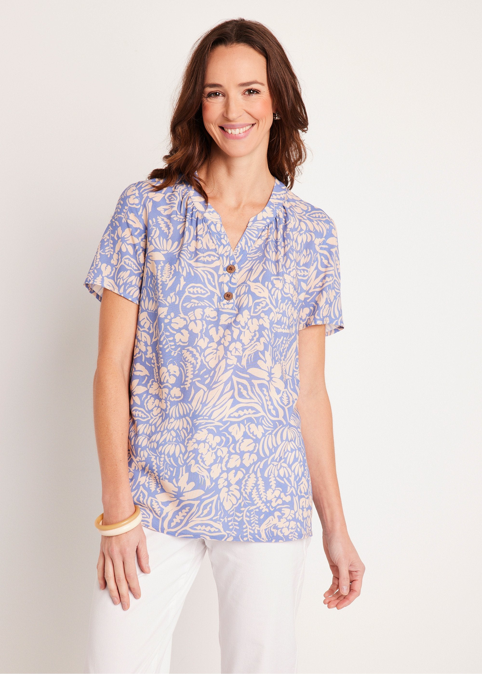 Printed mid-length straight V-neck tunic