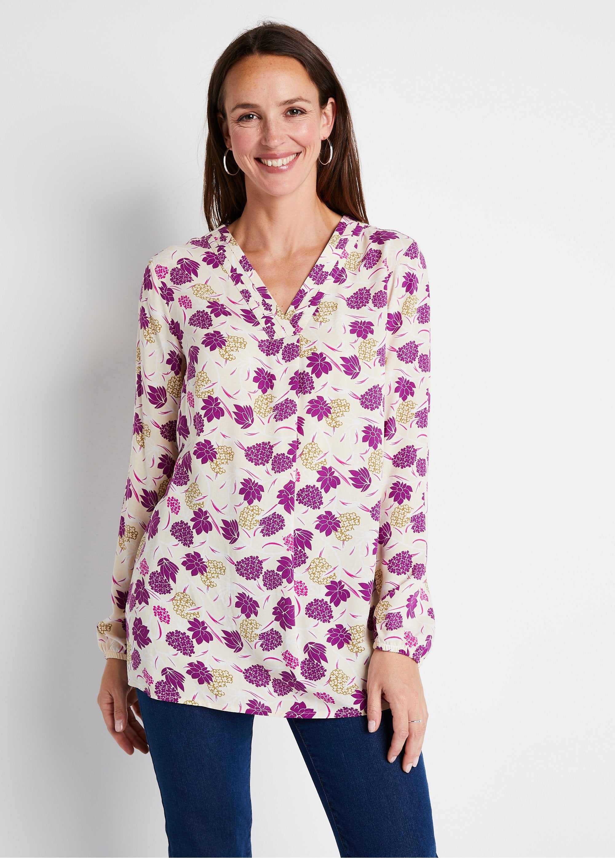 Plain or printed V-neck tunic