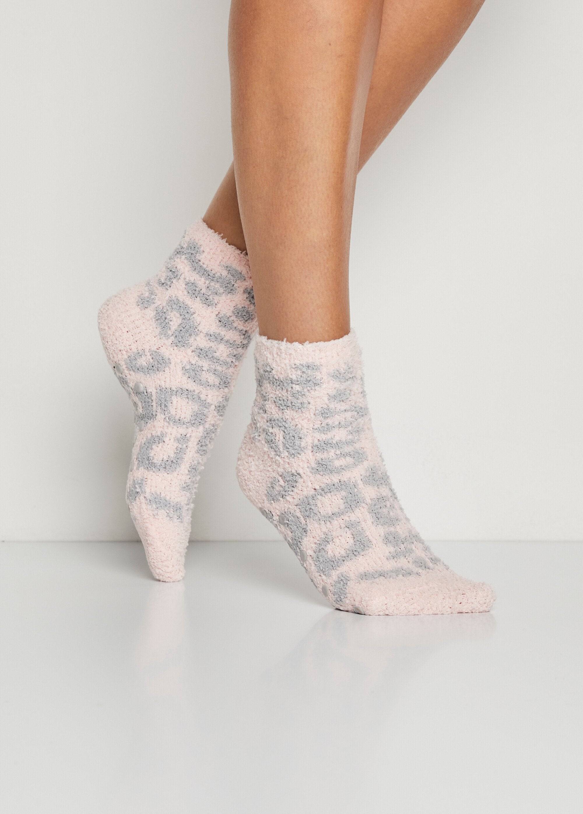 Pack of 2 pairs of Casa socks® indoor socks, with non-slip studded soles, ideal for home use on smooth surfaces. Give in to comfort in style! You'll appreciate their soft material and original style, for absolute comfort... Available in assorted gray (speckled pink/solid gray) and assorted black (speckled beige/solid black).