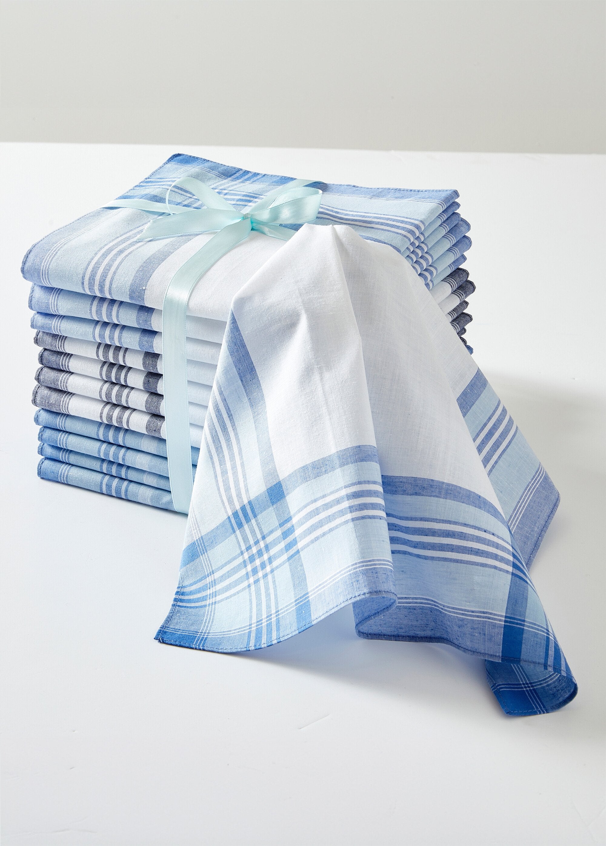 Modern, refined men's handkerchiefs of remarkable quality. Set of 12 handkerchiefs made from high-quality cotton. Finished to a very high standard, they offer excellent colorfastness. Available in 3 assorted colors. Single hem.