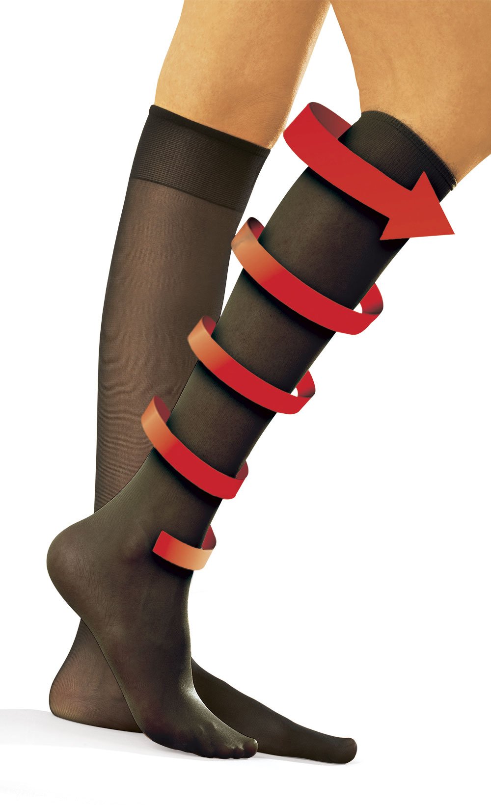 Women's knee-highs in 40 denier voile which offer light, decreasing compression for a relaxing effect.
