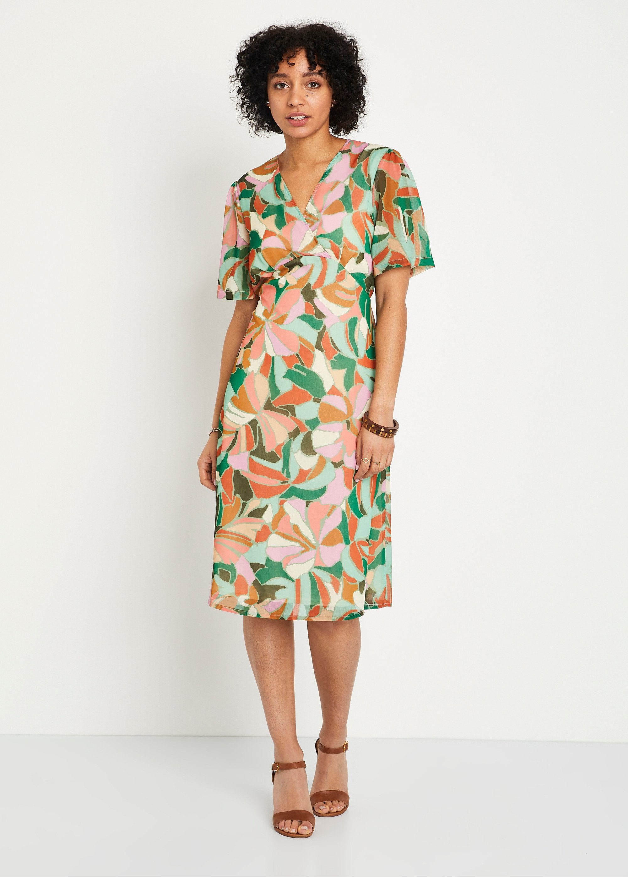 Short_straight_dress_with_veil_print_for_ceremony_Green_and_orange_FA1_curvy