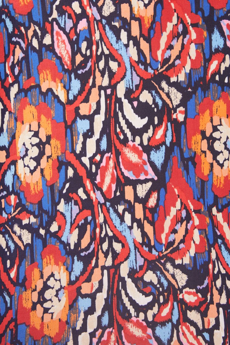 Loose-fitting short t-shirt with macramé finish  Blue and red